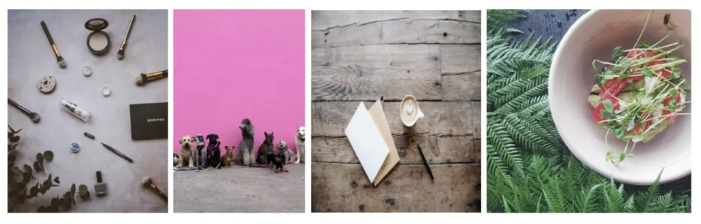 When shooting pictures for your social media platforms, remember to play around with different angles and perspectives. By doing this you give yourself flexibility when choosing a picture. You can post the same picture from different angles, in one post. Don’t zoom! The second you start zooming with your smartphone you lose picture quality. You simply have to get closer, or take the picture and crop it later. This is the best solution in order to avoid grainy and blurry pictures.   Focus on your background The background has a large impact on how your final result will turn out. With the right background your images become more expressively strong and you can expose your products in more creative ways. Here are some background ideas:
